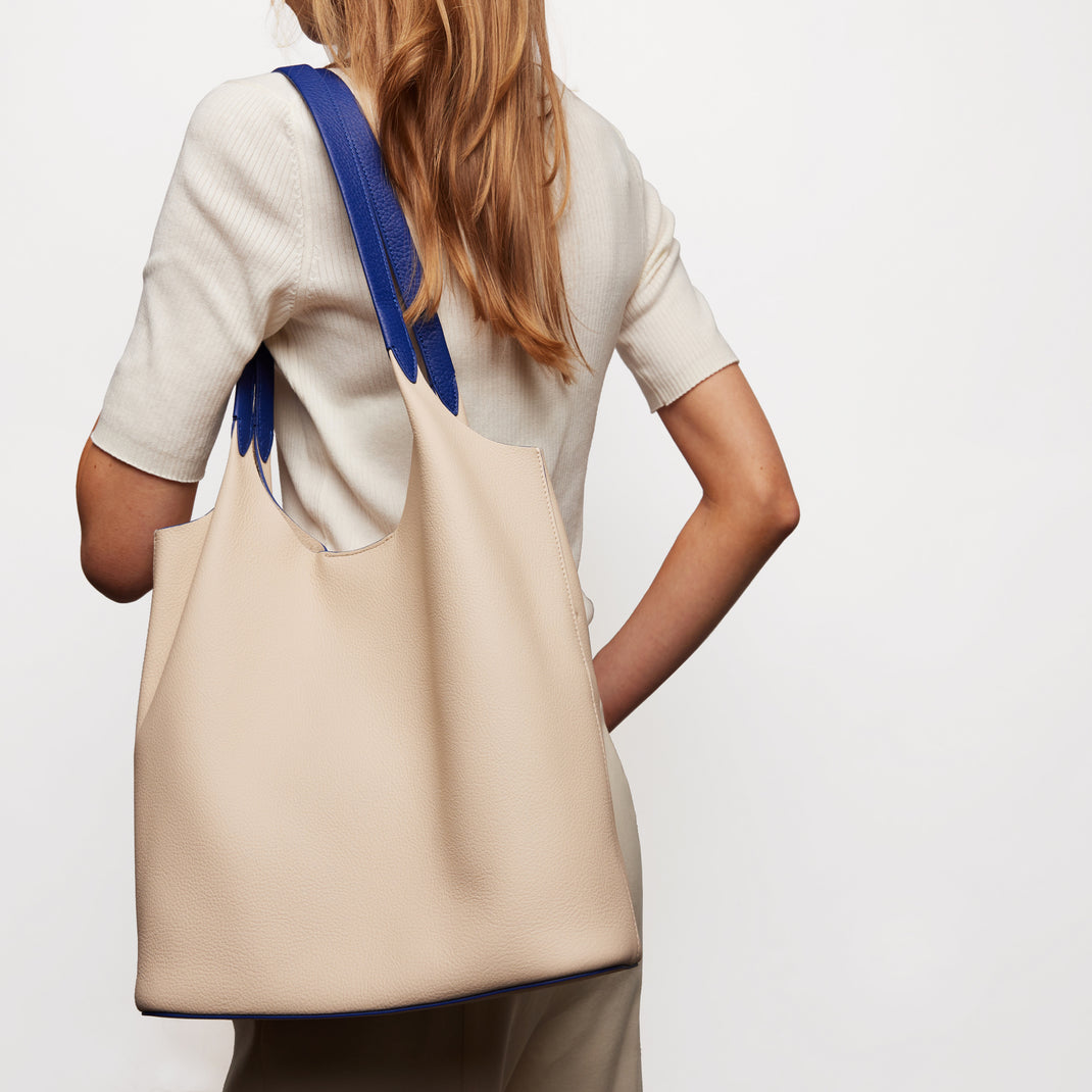 Sand/Regatta Blue captures the balance of shore and sea in a refined color-blocked design. The soft neutrality of Sand meets the cool clarity of Regatta Blue, offering contrast that feels both grounded and fluid.